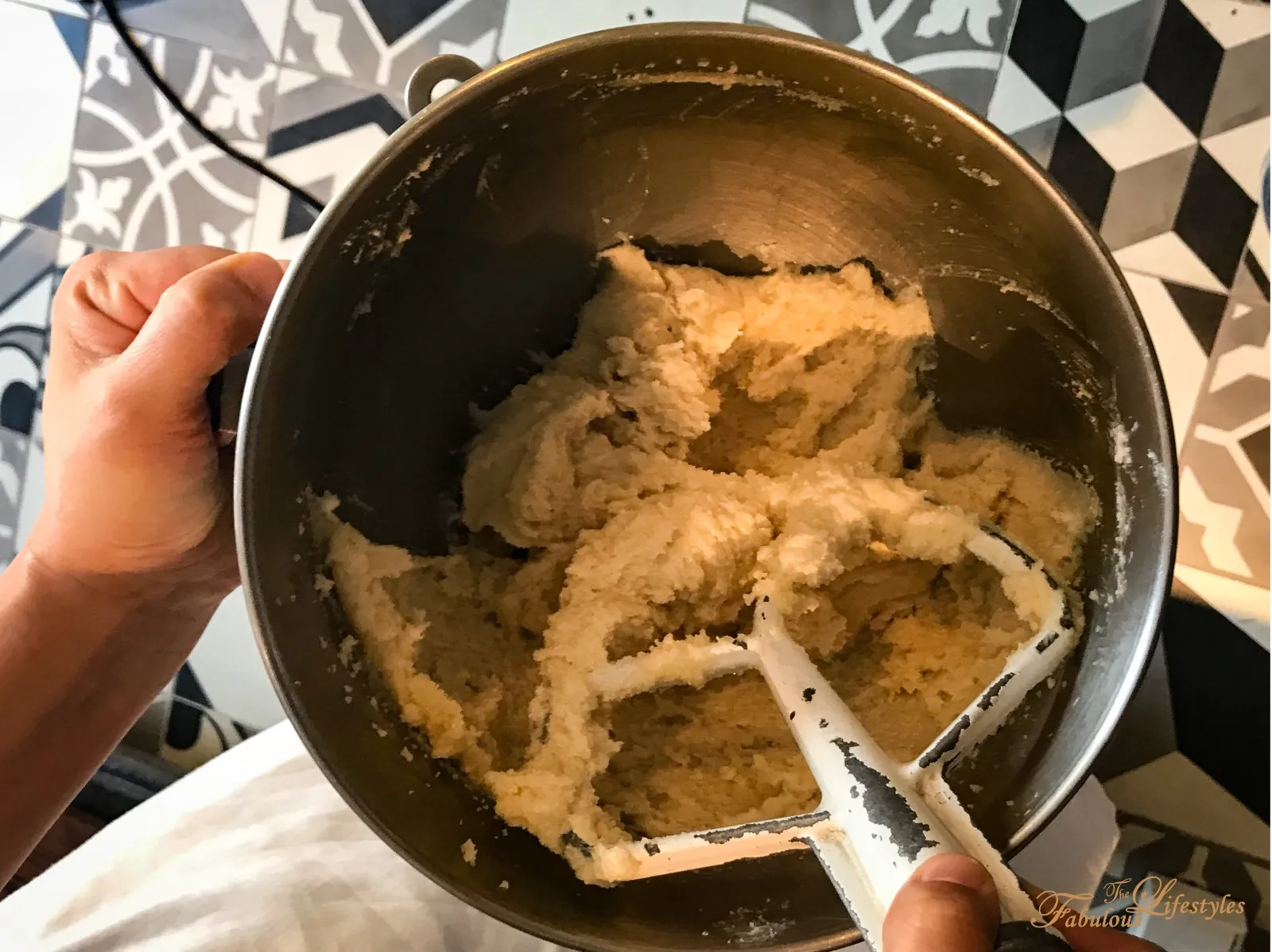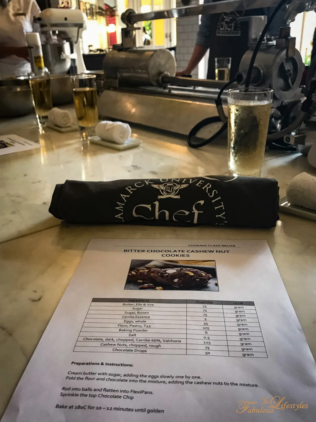 When we arrived at the class, each workstation was set up with a recipe card and an apron embroidered with "Lamarck University." (And yes, you get to take the apron home as a souvenir!) The instructor then detailed all the steps for making the cookie dough, and everyone in the class got to take turns performing one step to create a communal batch of dough together.