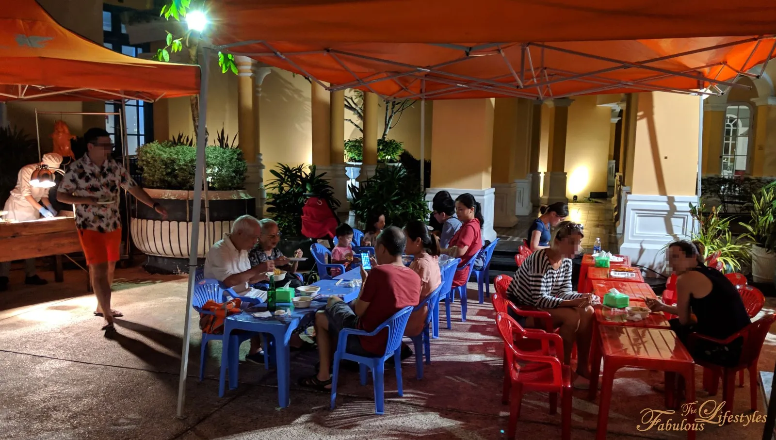 After loading up on all the food you want, there's a seating area nearby with colorful plastic tables and chairs — just like you'd find at any street-side spot in Vietnam — where you can sit down and enjoy your haul~