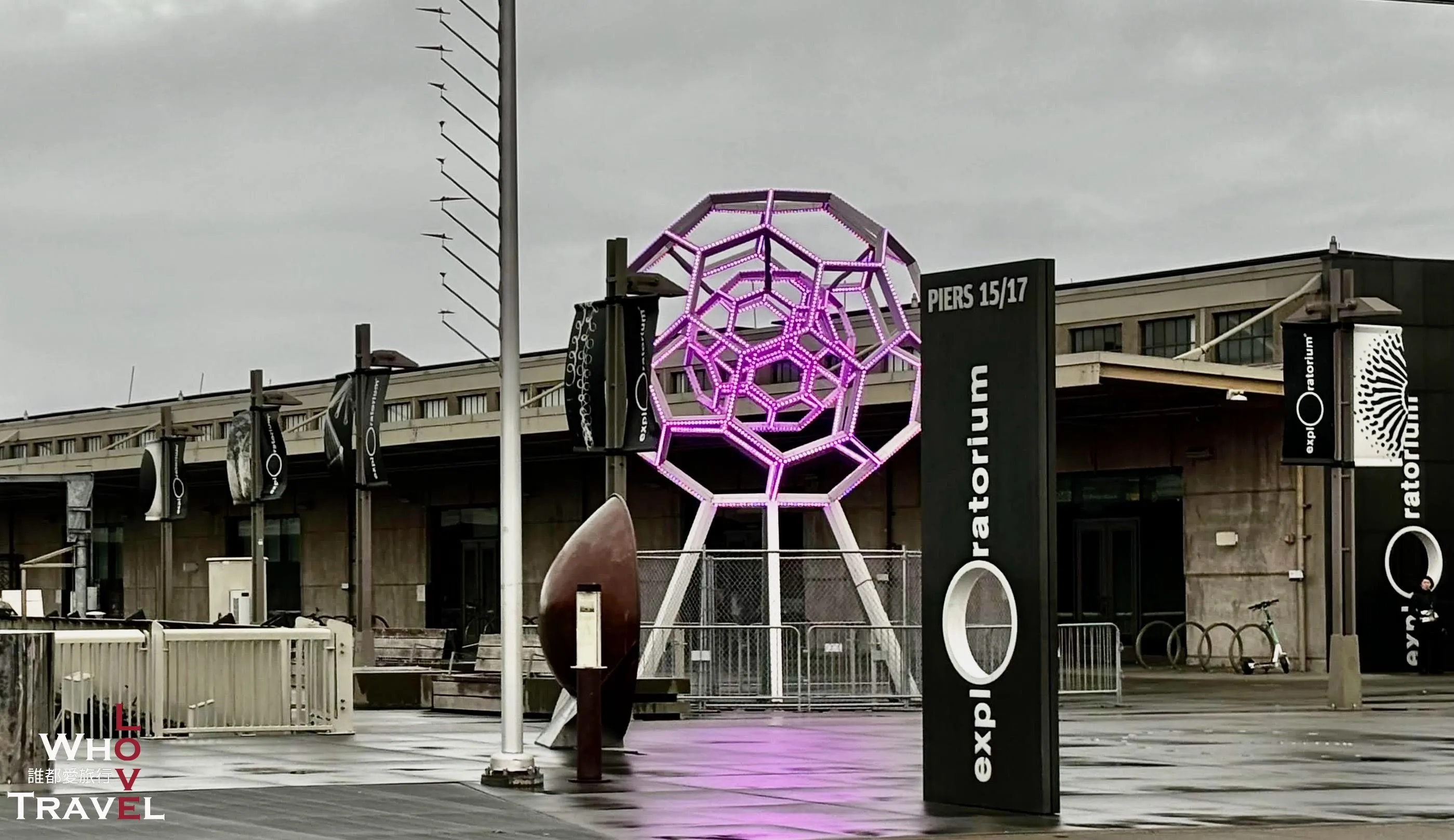 Outside the Exploratorium, you'll immediately spot an eye-catching, massive art installation constantly shifting colors. This towering 25-foot illuminated sculpture, called "Buckyball," consists of two nested geometric spheres covered in over 4,500 LED nodes. Controlled by custom software, it can display up to 16 million different colors! It's dazzlingly vibrant during the day and twinkles like starlight at night. Its soccer-ball-like shape is actually based on a carbon molecule structure discovered by scientists in 1985 known as "Buckminsterfullerene" (or "Buckyball" for short), which later became crucial to nanotechnology research. This stunning piece truly symbolizes the perfect fusion of art and science.