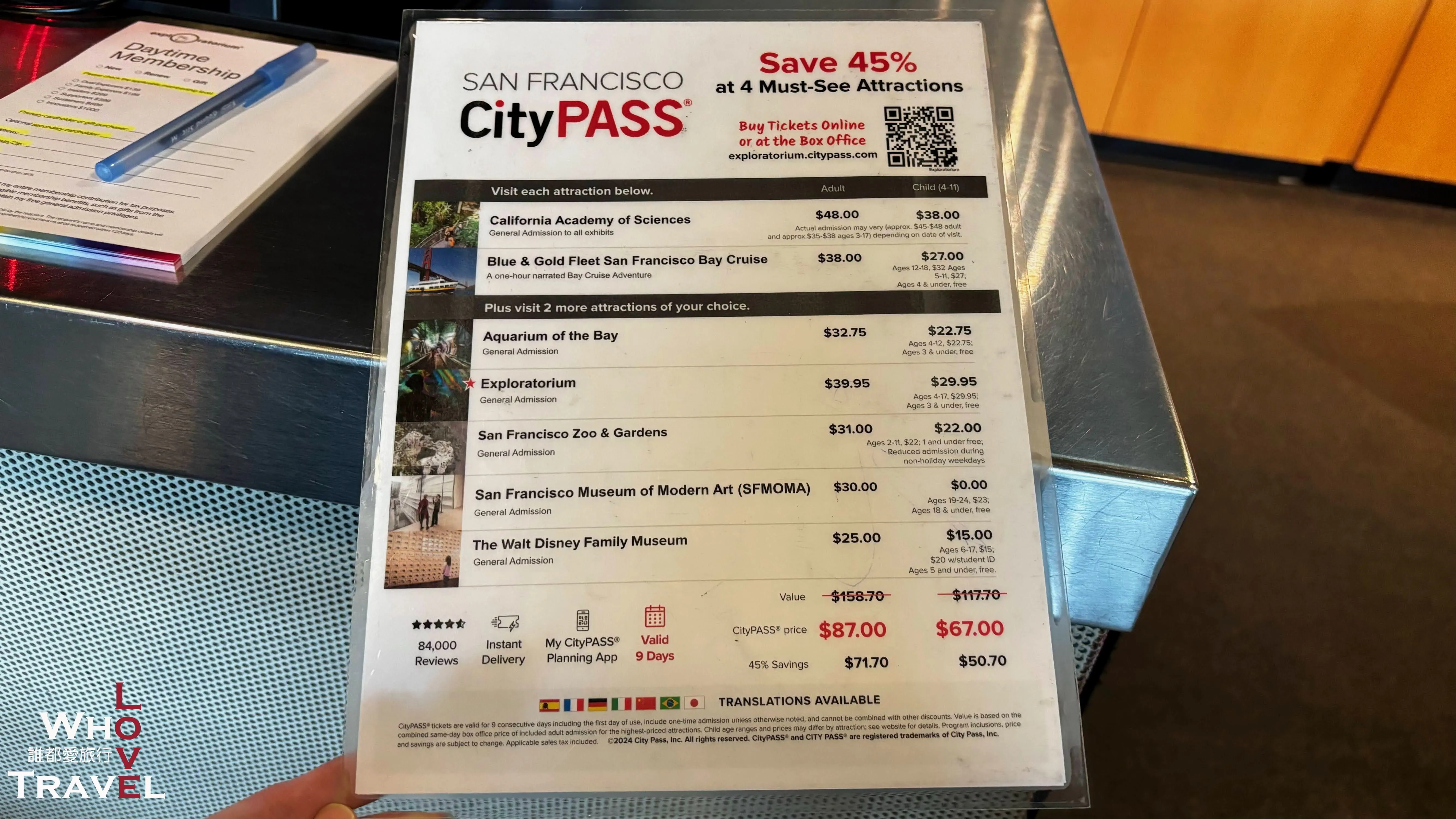 Right at the ticket counter, there's a sign introducing how buying an Explorer Pass can be much cheaper than purchasing individual tickets! There are two main multi-attraction passes in San Francisco: Go City and City Pass. When buying on Klook, the difference is that Go City lets you choose a pass for 2 to 5 attractions, while City Pass is fixed for 4 attractions. You can choose based on your itinerary. If you're planning to visit more than two ticketed attractions in SF, we highly recommend checking these out to save some money!
