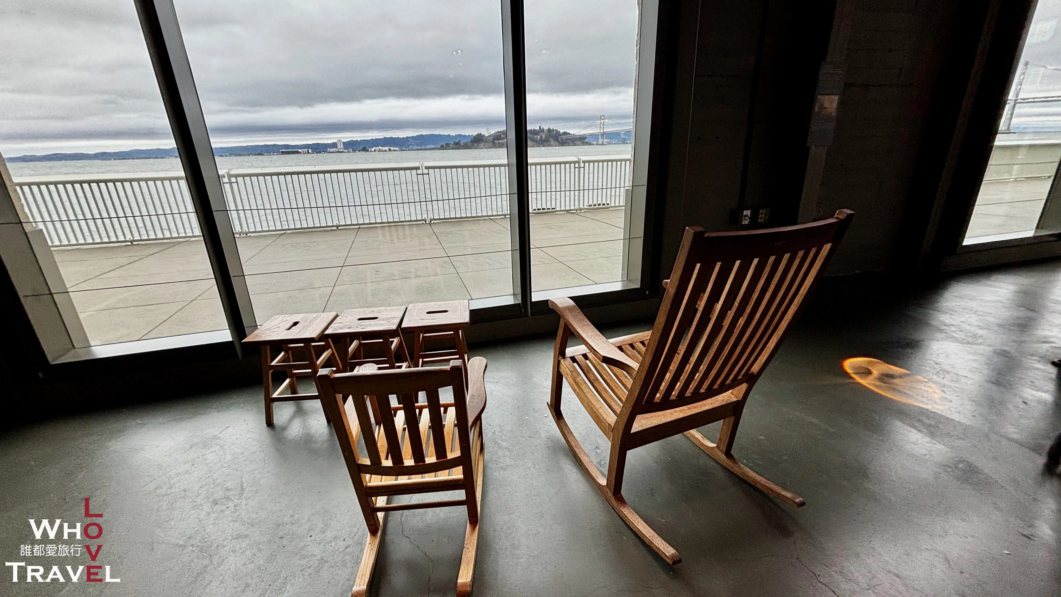 By the floor-to-ceiling windows, they have big and small rocking chairs. You can sit with your little ones, rock back and forth, and gaze out at the amazing bay views without braving the cold wind outside. It's incredibly relaxing!