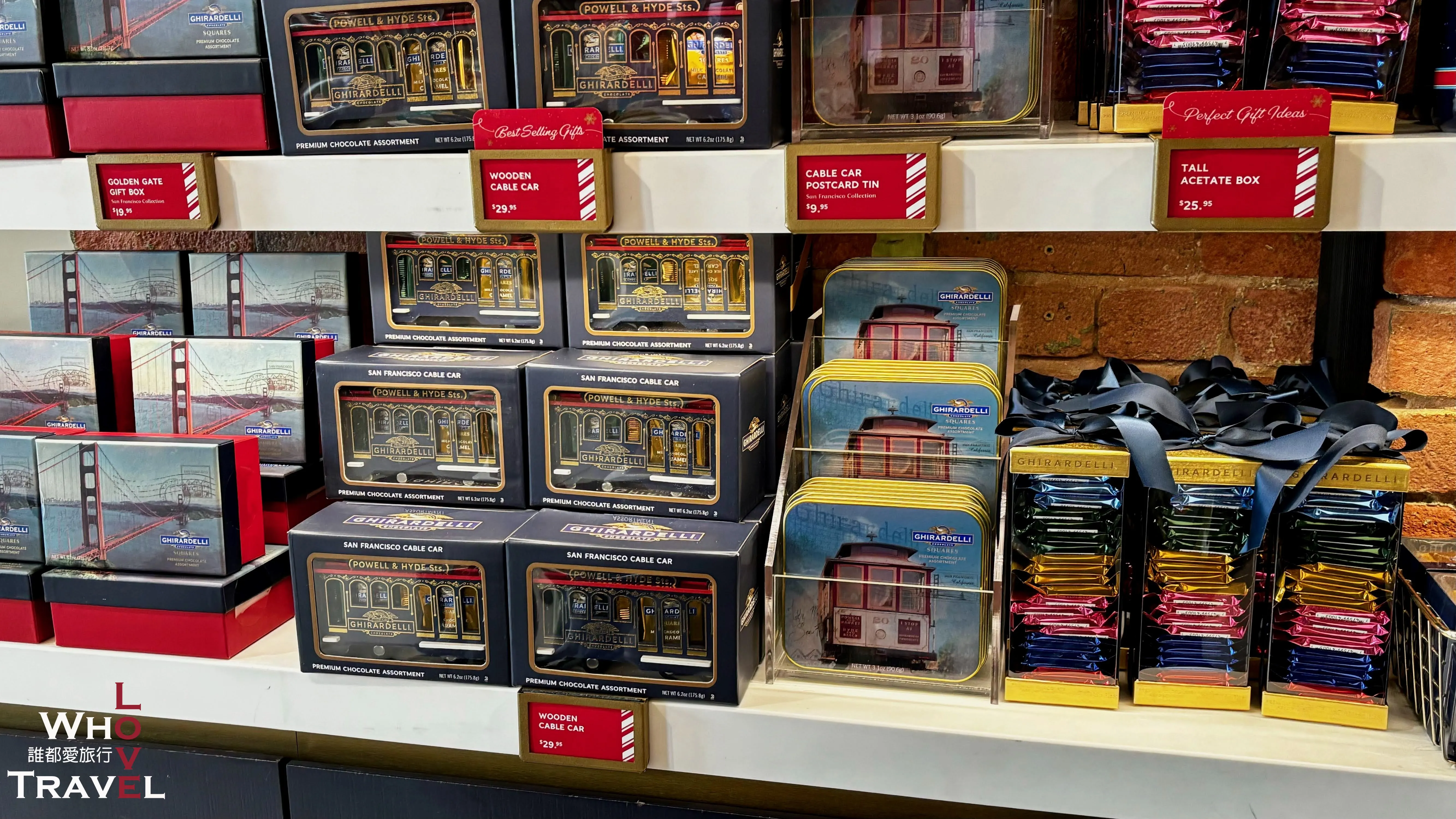 They also sell all sorts of San Francisco-themed souvenirs! There are so many chocolate products you can take home, and the packaging is gorgeous and high-quality. It's a hugely popular choice for souvenirs and a really fun spot for tourists to browse!
