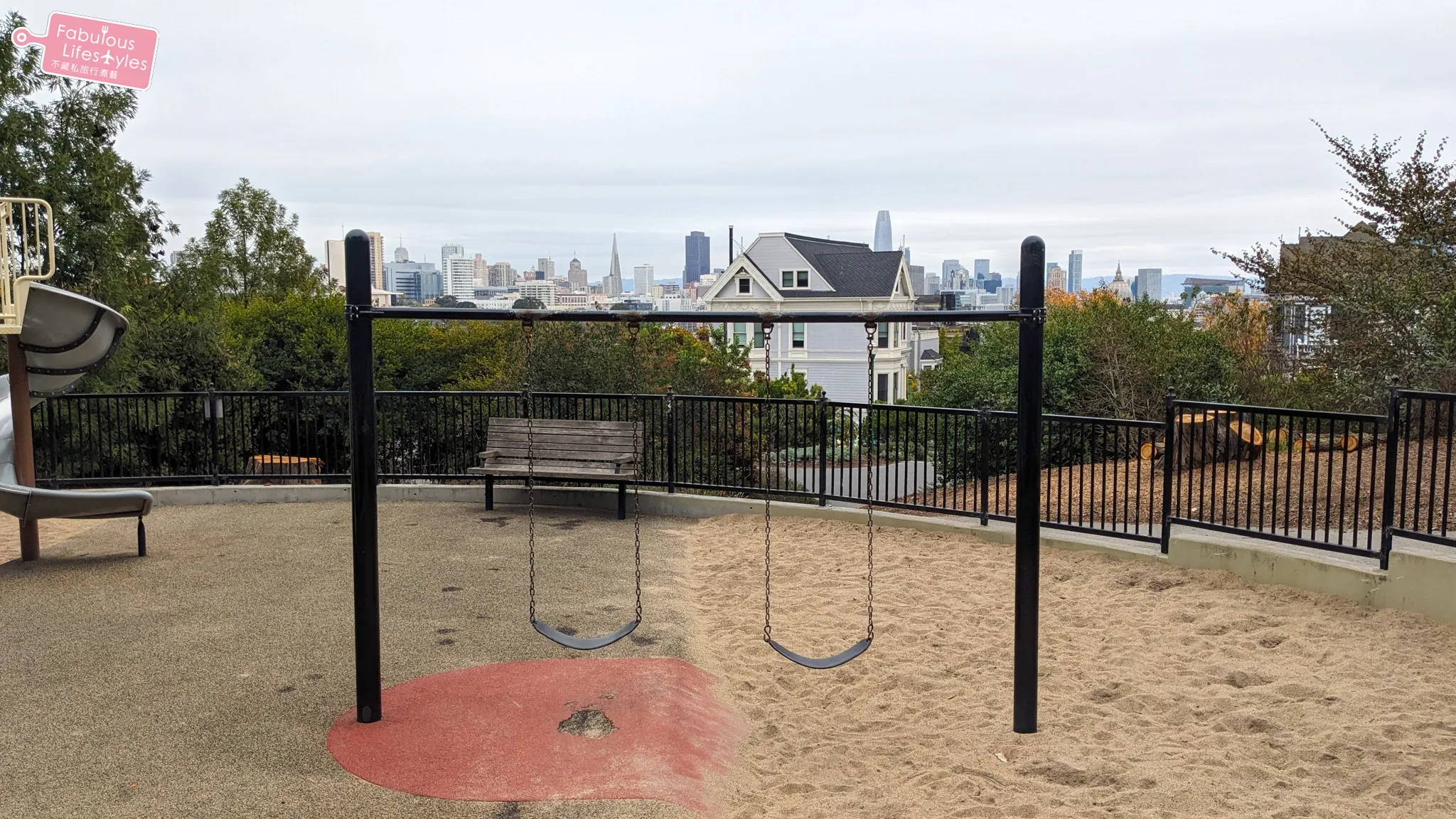 Imagine swinging on the swings while looking out over such a beautiful cityscape.