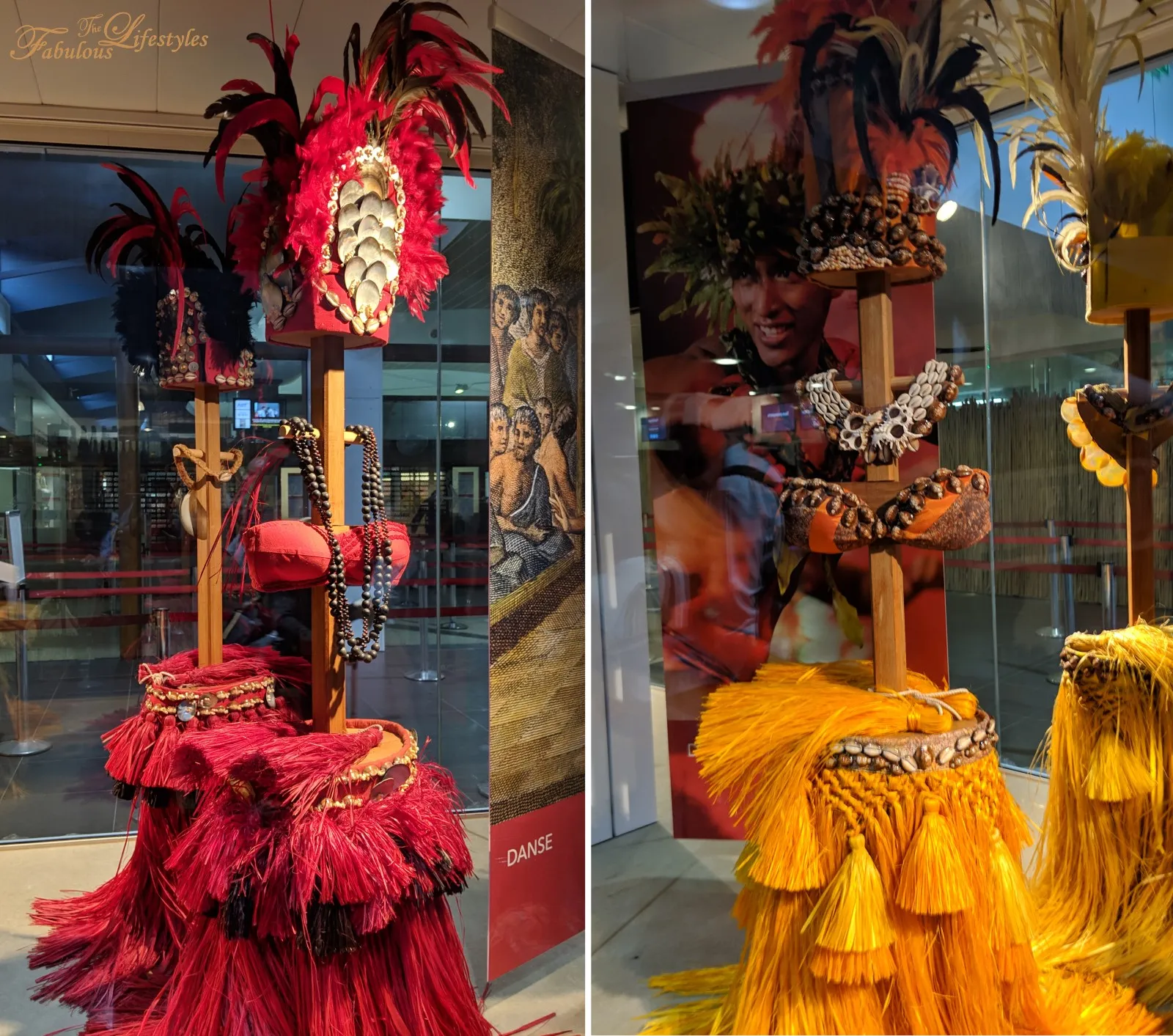 Next, as you wait in line to pass through customs, you'll notice displays of local cultural artifacts alongside the queue. It definitely keeps the wait from feeling boring!