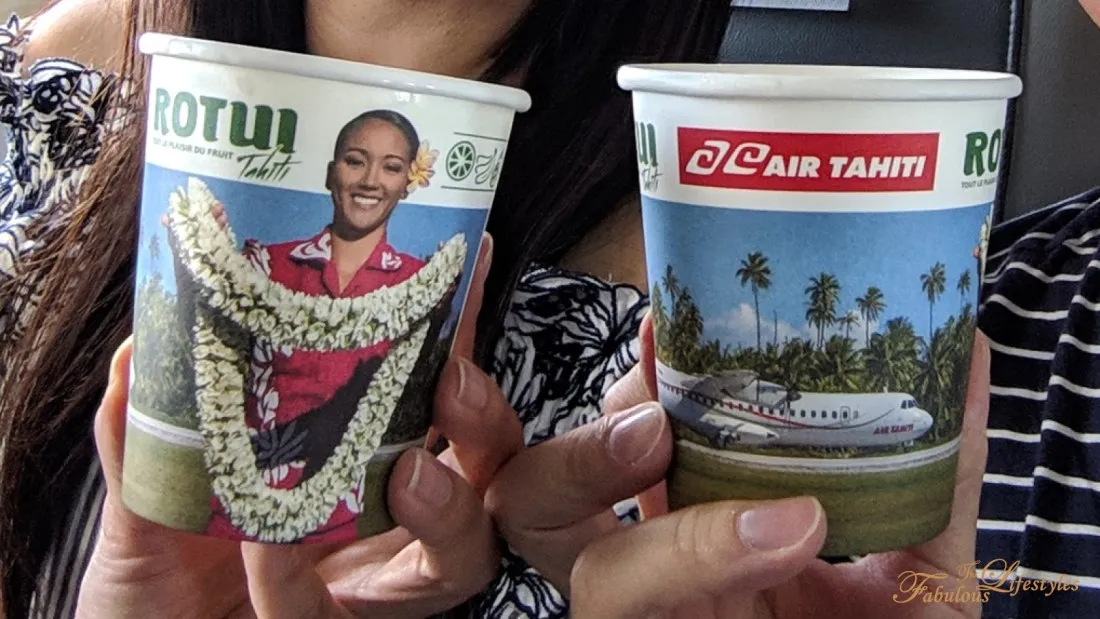 After passing Moorea, there's a long stretch of just ocean views. The flight attendants came around with drinks, and we were thrilled to find out they were serving pineapple juice made locally in Moorea!