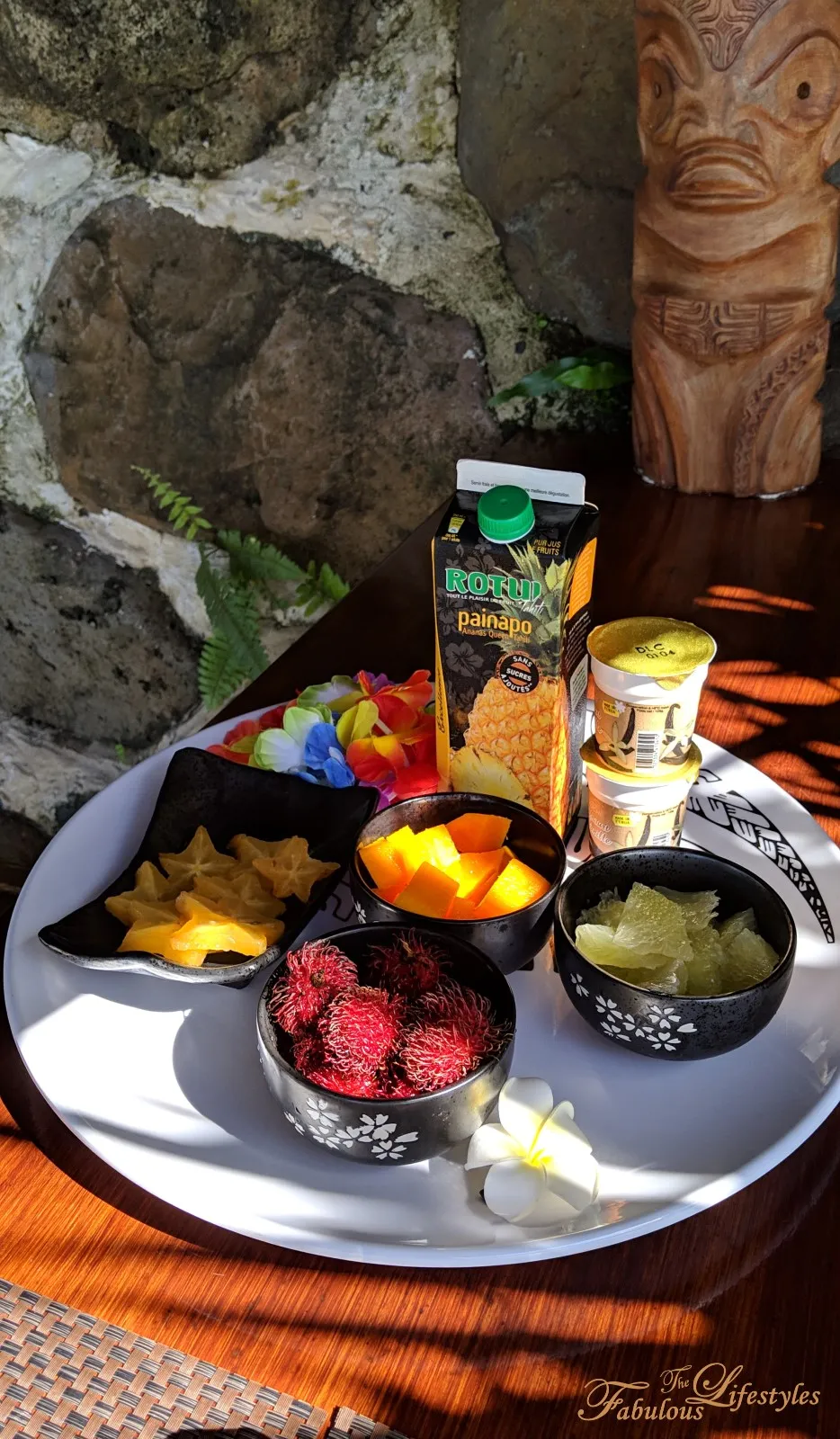 On one of our mornings, we pre-booked breakfast with the host ($15 USD per person) — and it was so worth it. He prepared a gorgeous spread of tropical fruits, locally made Tahitian juice, and yogurt!