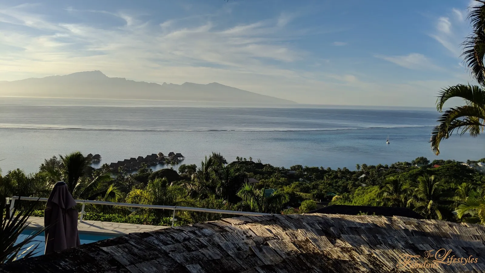 Waking up to see the misty silhouette of Tahiti island across the water, reflected in a brilliant blue lagoon, framed by overwater bungalows, wispy clouds, and a perfect blue sky… Our hearts were absolutely full!!!
