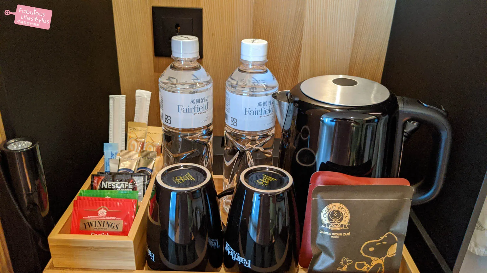 When we saw the coffee and tea selection, Cherry almost screamed out loud! Snoopy! Yes, the in-room drip coffee is from Charlie Brown Cafe, and the tea bags are by Twinings. As a long-time fan of Twinings tea and a childhood Snoopy lover, Cherry couldn't have been happier. The hotel's choices hit all the right notes for her!
