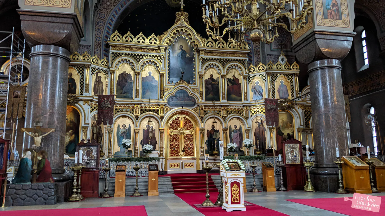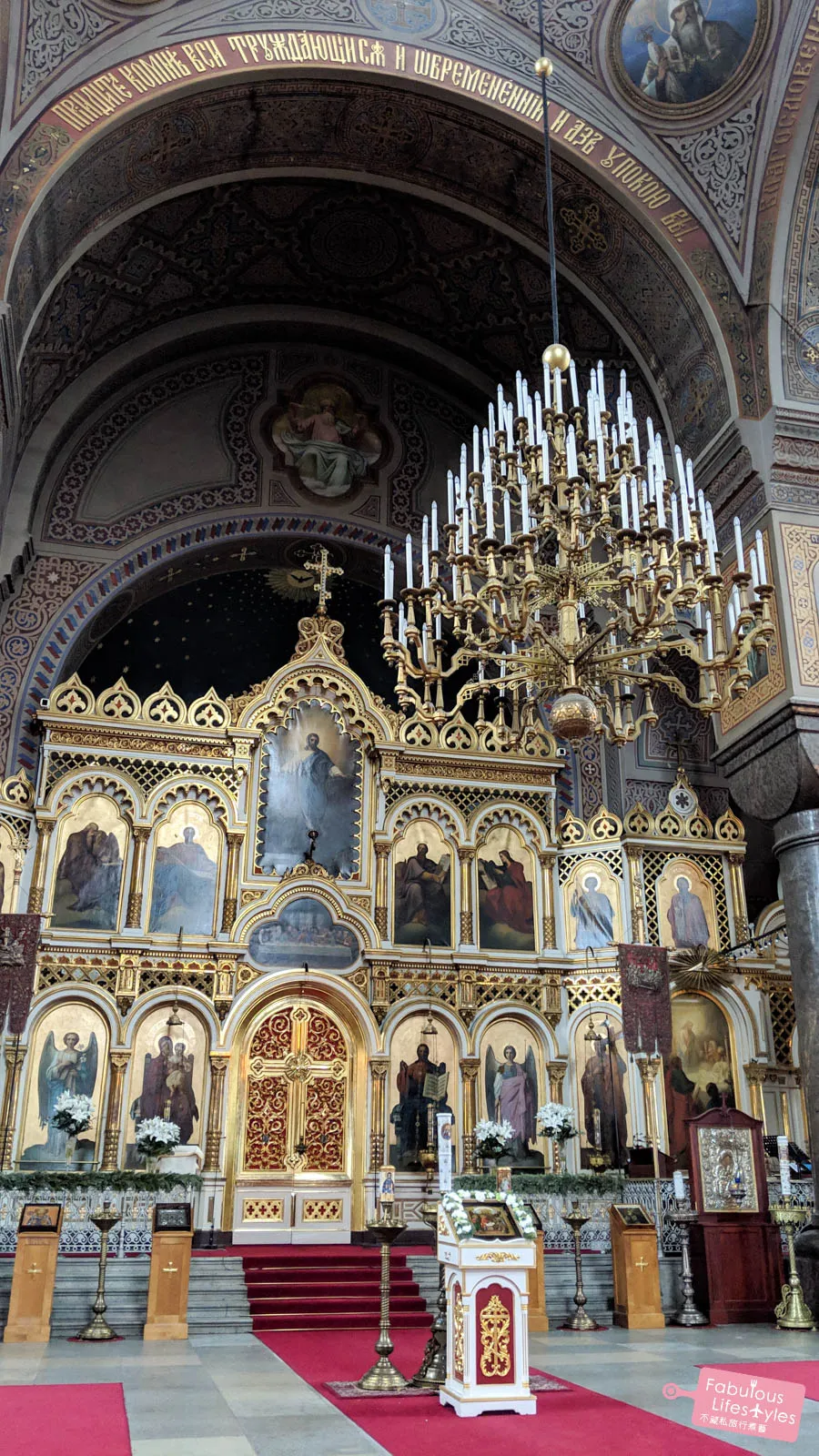 Intricately carved soaring dome, vivid icon paintings, a massive glittering chandelier — all together, it creates one of those rare moments where you simply stand still and take it all in. We came out of Uspenski Cathedral genuinely surprised: the design is so different from most European churches we've visited. It's absolutely worth the stop.