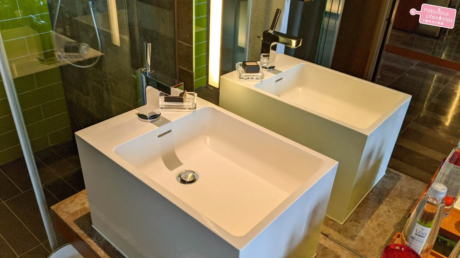 The amenities include a facial cleanser, and it's actually pretty good! When we saw one red and one green rinse cup, we assumed the toothbrushes would be red and green too. Curiosity got the better of us, but upon opening them, we found out both toothbrushes were red! 😆 Later on, when we stayed at the Moxy Hotel in Taichung, we discovered a hotel that actually did think like us and provided two different colored toothbrushes!