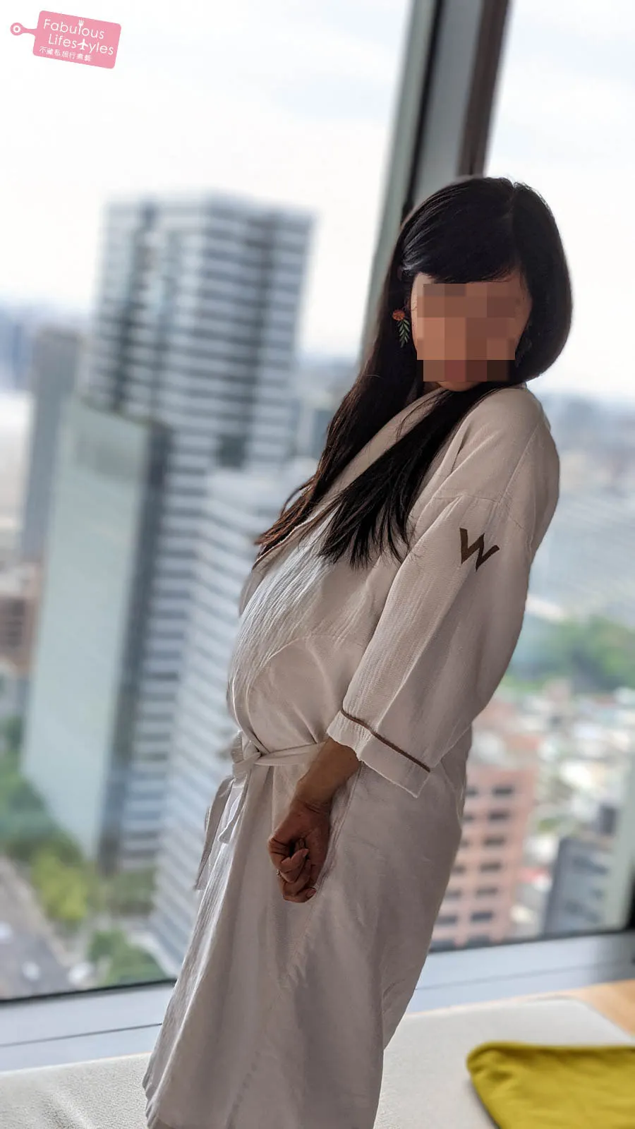 The bathrobe feels more like a light cotton material—it’s lightweight and highly comfortable. Combined with the signature "W" embroidered on the sleeve, it gave Cherry the strong urge to buy one to take home!