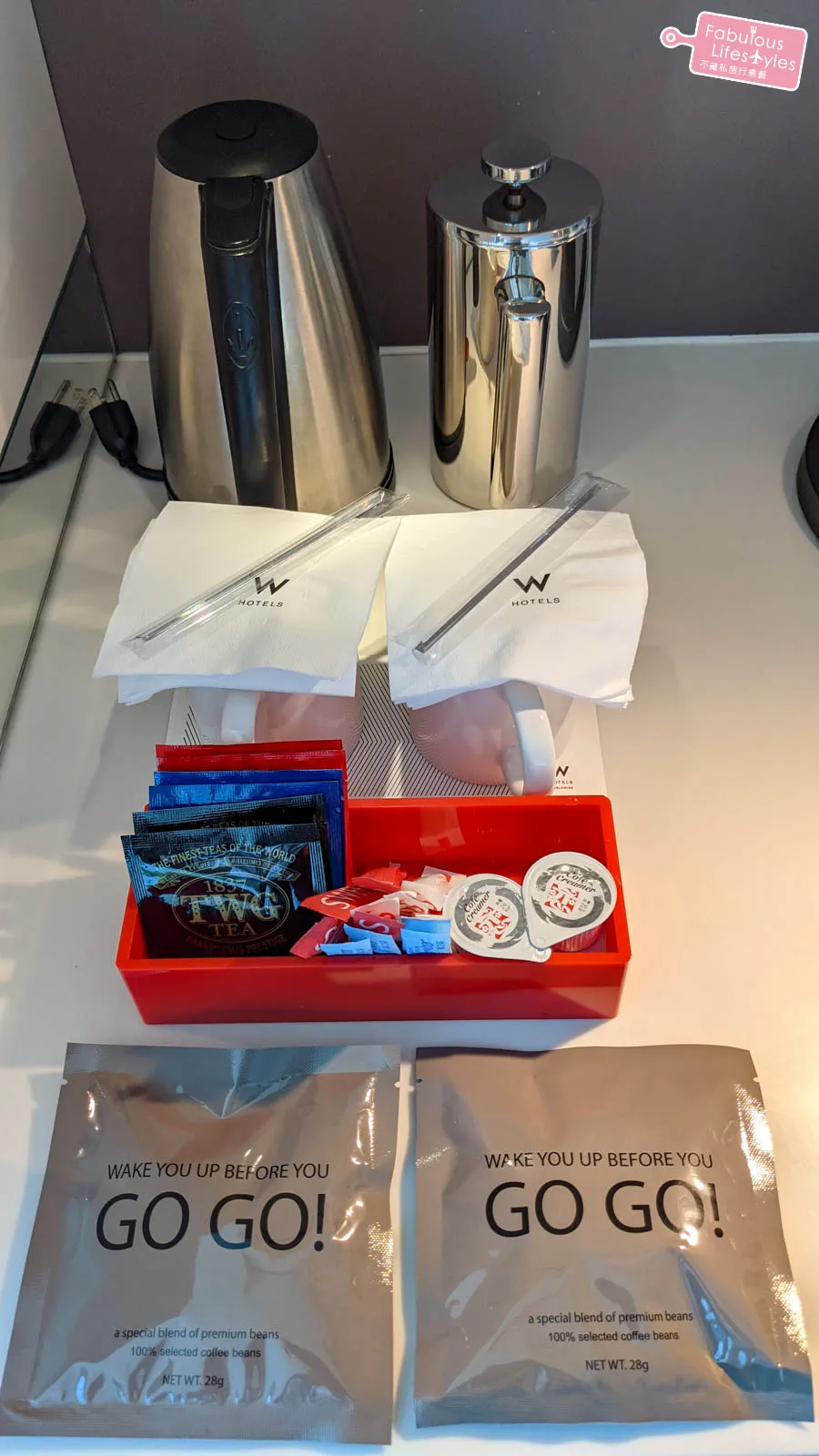 The most fascinating item is this bright red jewelry stand! We’ve never seen a jewelry stand in any other hotel. If you like it, you can even buy one to take home. We have to say, W Hotel really knows how to do business—the entire room basically doubles as a showroom 😆