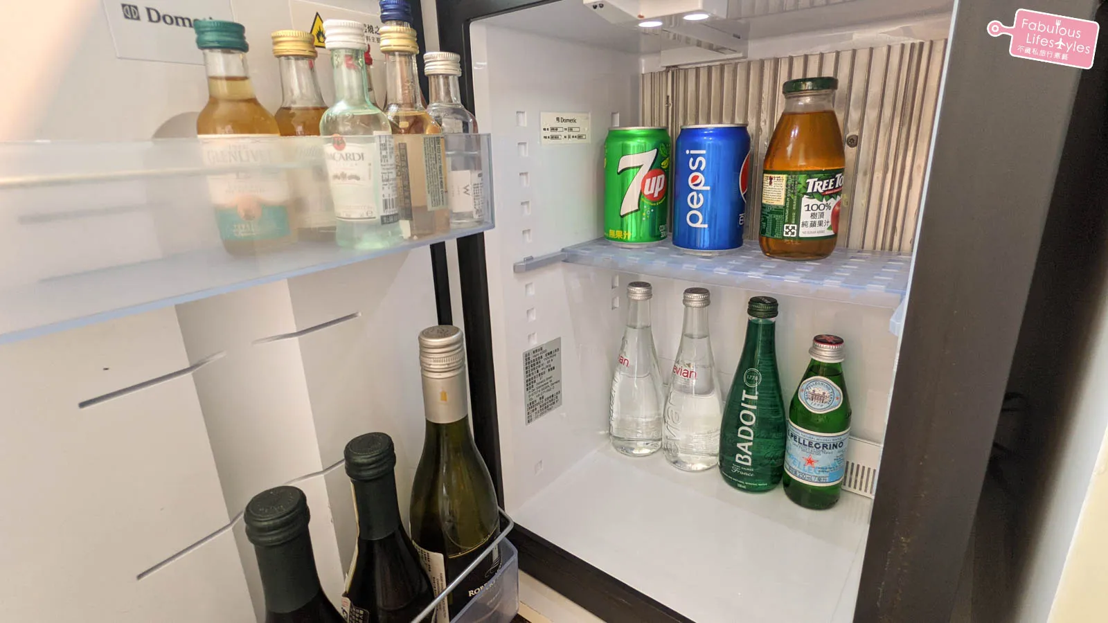 Open the mini-fridge, and you're greeted with a massive selection of alcohol and beverages!